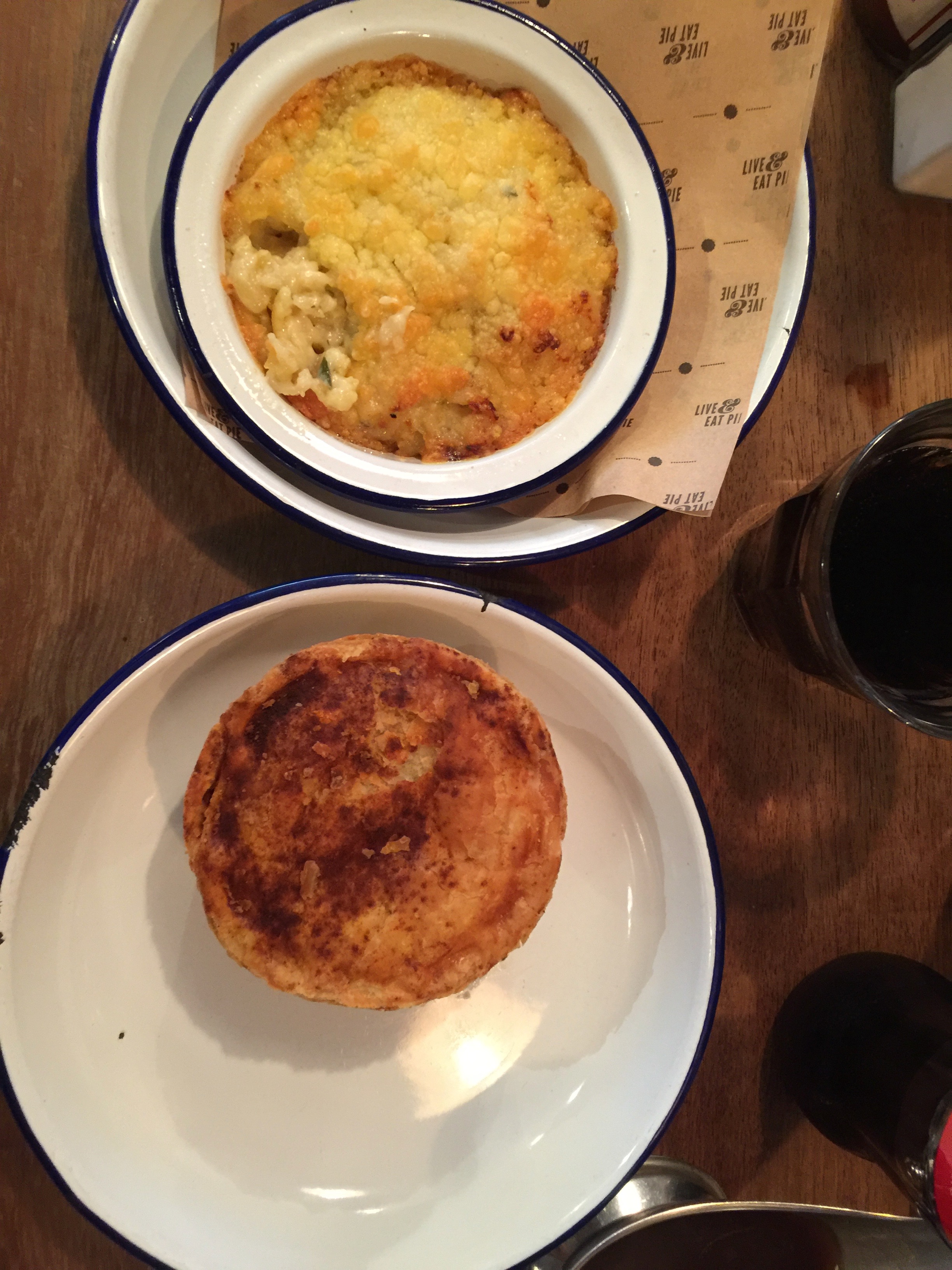 Metámonos en faena. Lo típico del Norte de Inglaterra son las Pies. Una pie es como una empanada, una “tarta” de hojaldre rellena de carne, pescado, queso y cebolla o vegetales. Si la bañas con salsa gravy y con puré de patatas y guisantes tienes el plato perfecto del norte de Inglaterra. Y si buscas un sitio con una gran relación calidad-precio y al que van todos los locales, Pieminister es el sitio de ambiente Quirky en pleno Northern Quarter.